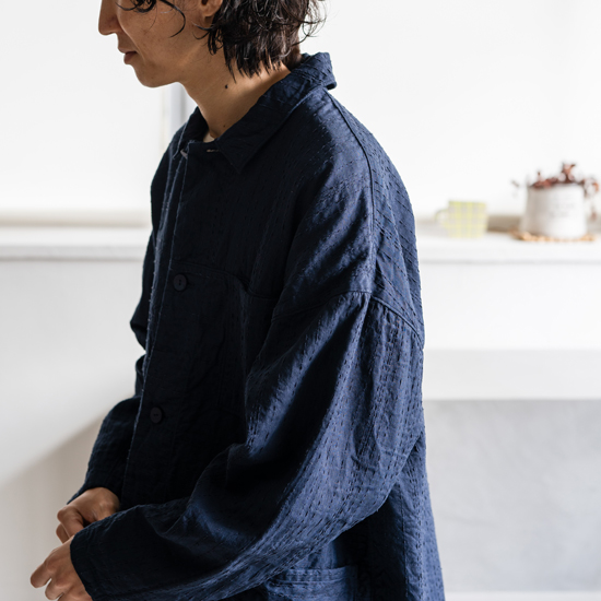 MITTAN [SH-149C]強撚OCブロードシャツ(草木染)[インディゴ×柿渋]